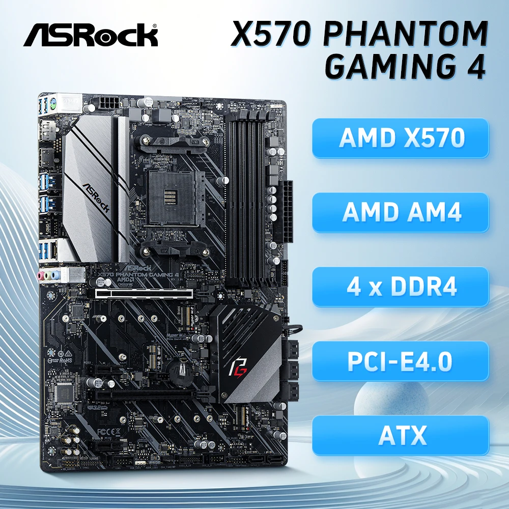 Материнская плата AMD X570 PHANTOM GAMING 4 4 x DDR4 128 ГБ ОЗУ поддерживает Процессор AMD AM4 слот R5 5500 5600, R7 5700 5700X R9 5900