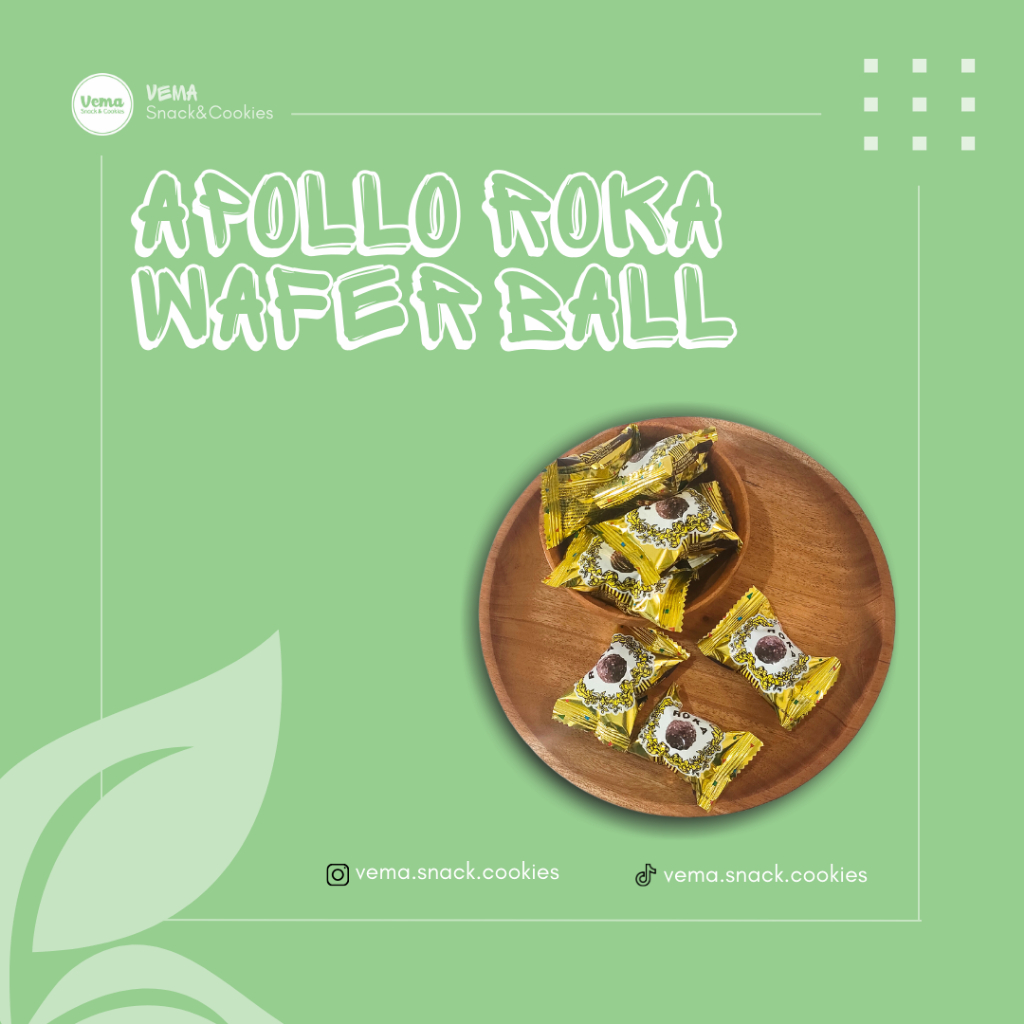 - Apollo Roka Wafer Ball adalah camilan renyah yang terbuat dari wafer berbentuk bola dengan lapisan coklat lezat di dalamnya. Dikemas dalam kemasan yang praktis dan mudah dibawa, camilan ini cocok untuk dinikmati dimana saja dan kapan saja.