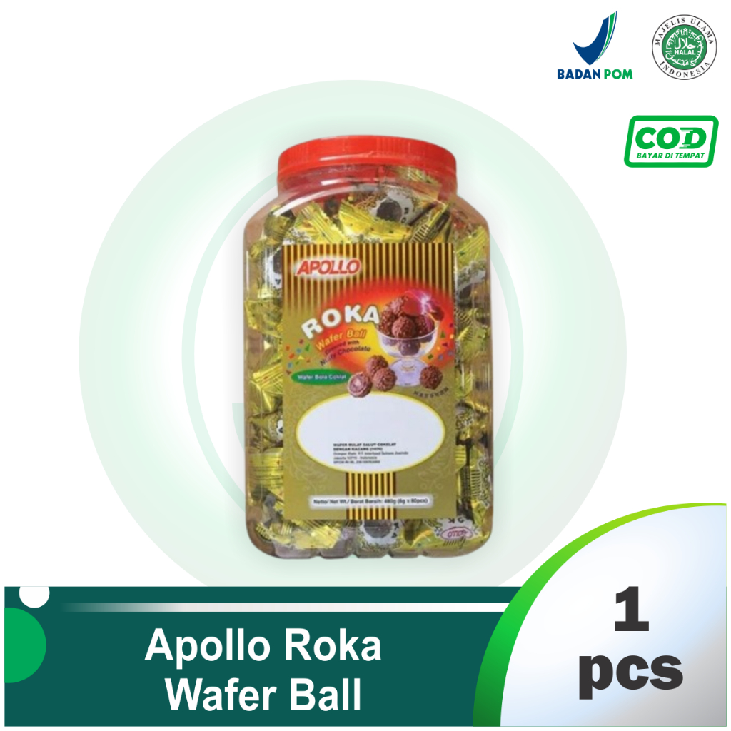 Apollo Roka Wafer Bola Coklat, coklat bentuk bola dengan wafer yang renyah dibalut kacang. Camilan kesenangan anak-anak.