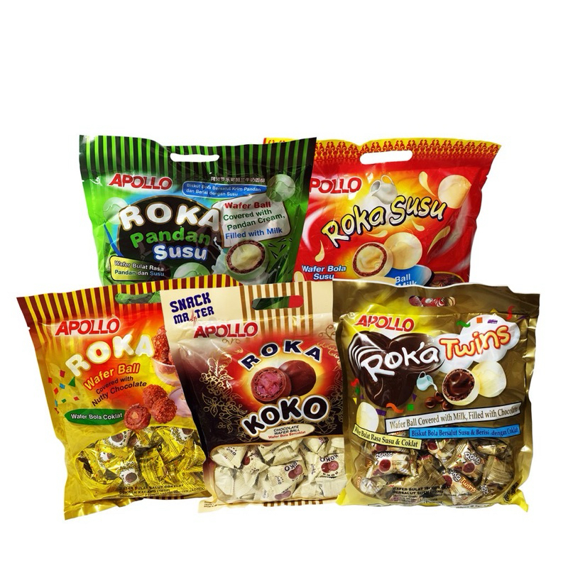 Apollo Roka adalah wafer berbentuk bulat dgn isian coklat susu dan bersalut coklat kacang yg enak. Dikemas individual berwarna emas yg khas dan dijual dgn berbagai kemasan sesuai jumlah isi didalamnya. Beratribut lengkap, BPOM dan Halal MUI. Silahkan di order :)