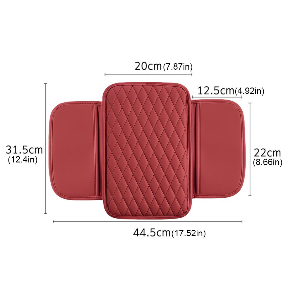 Arm Rest Mat Leather Elbow Support Storage Box Car Armrest Box Protective Pad Center Console Protector Cover with Side Pocket Red