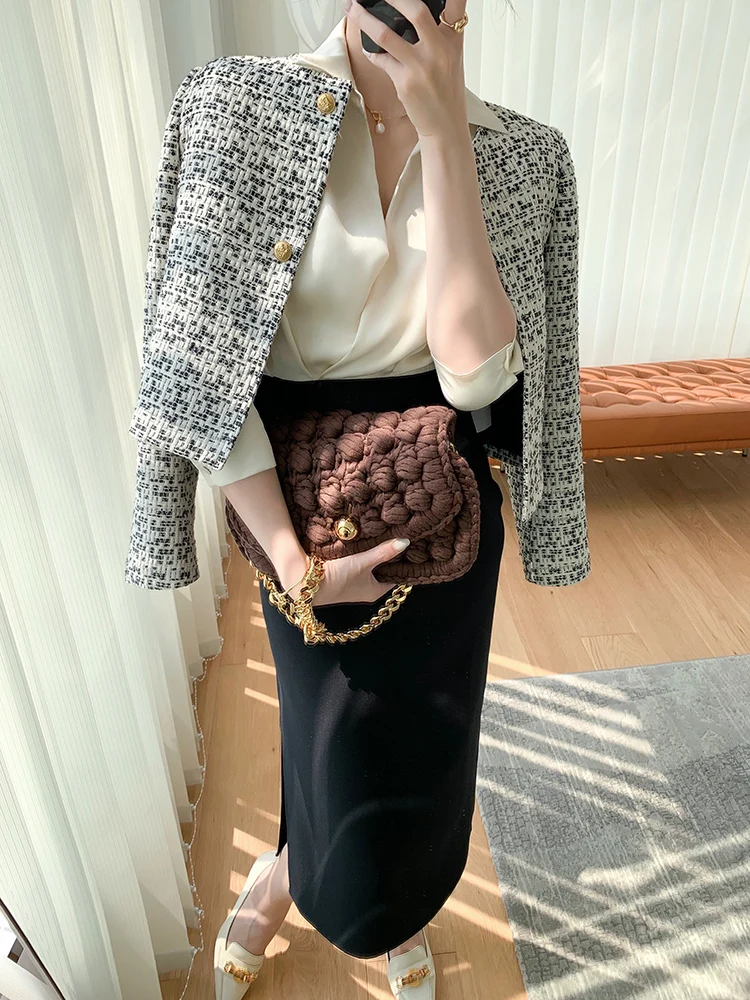 SMTHMA Высококачественная модная винтажная элегантная твидовая шерстяная куртка, пальто для женщин, новое осеннее короткое пальто OL, верхняя ...