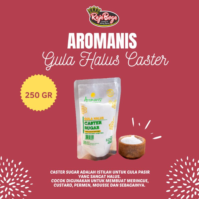 Aromanis Caster Sugar merupakan gula halus yang menggunakan 100% pemanis alami. Diproses secara higienis dan tanpa bahan pengawet, Aromanis Caster Sugar cocok digunakan untuk berbagai resep dan keperluan lainnya.