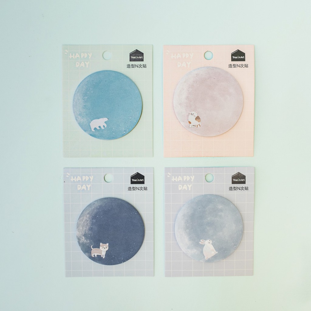 Catatan tempel bulat berbentuk bulan dengan warna pastel dan binatang lucu. Gunakan untuk membuat catatan singkat.