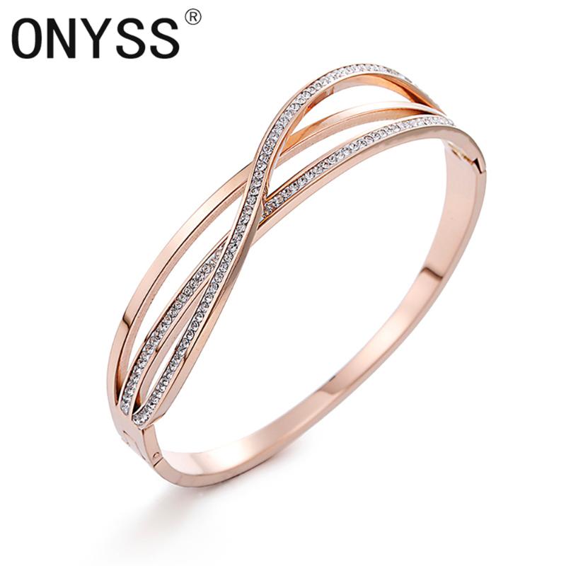 Arrival 925 Sterling Silver Simple Clear Rhinestone Bracelets Interwoven Line For Women Statement Jewelry Bangle