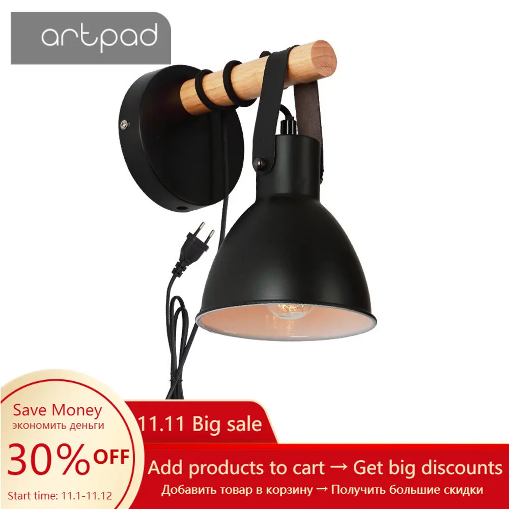 Artpad американская промышленная черная настенная лампа, комнатный светильник с вилкой для гостиной, прикроватный светильник в стиле лофт, ле...