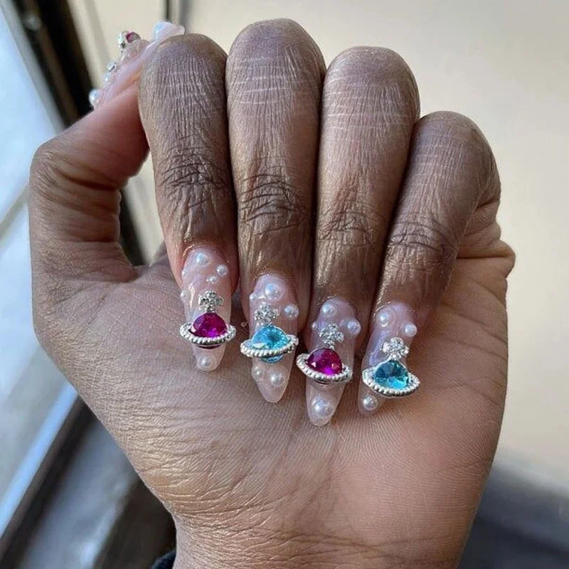 Fancy Hot Pink Rhinestone Gold Deco Metal Charms Metal Deco Charms Nail Art, As shown
