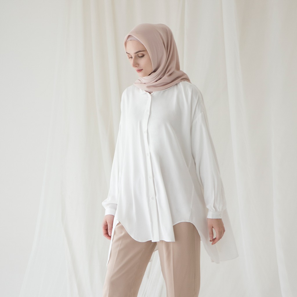 Atasan lengan panjang, busui dan wudhu friendly.