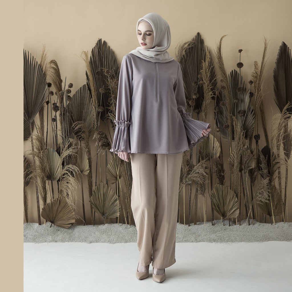 Atasan lengan panjang dengan detail pleats pada bagian tangan.