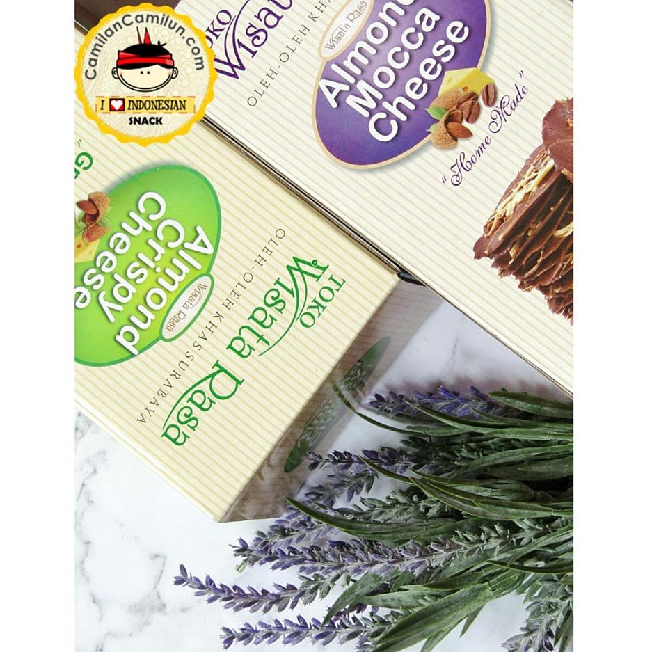 Almond Crispy Cheese Wisata Rasa, sangat tepat bagi Anda terutama yang berkunjung ke Surabaya dan sedang bingung mencari oleh-oleh khas surabaya.