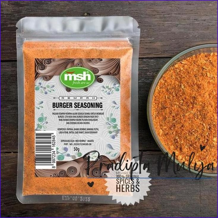 Burger Seasoning merupakan bumbu yang terbuat dari rempah-rempah alami, digunakan untuk membuat burger dengan rasa spicy yang nikmat.