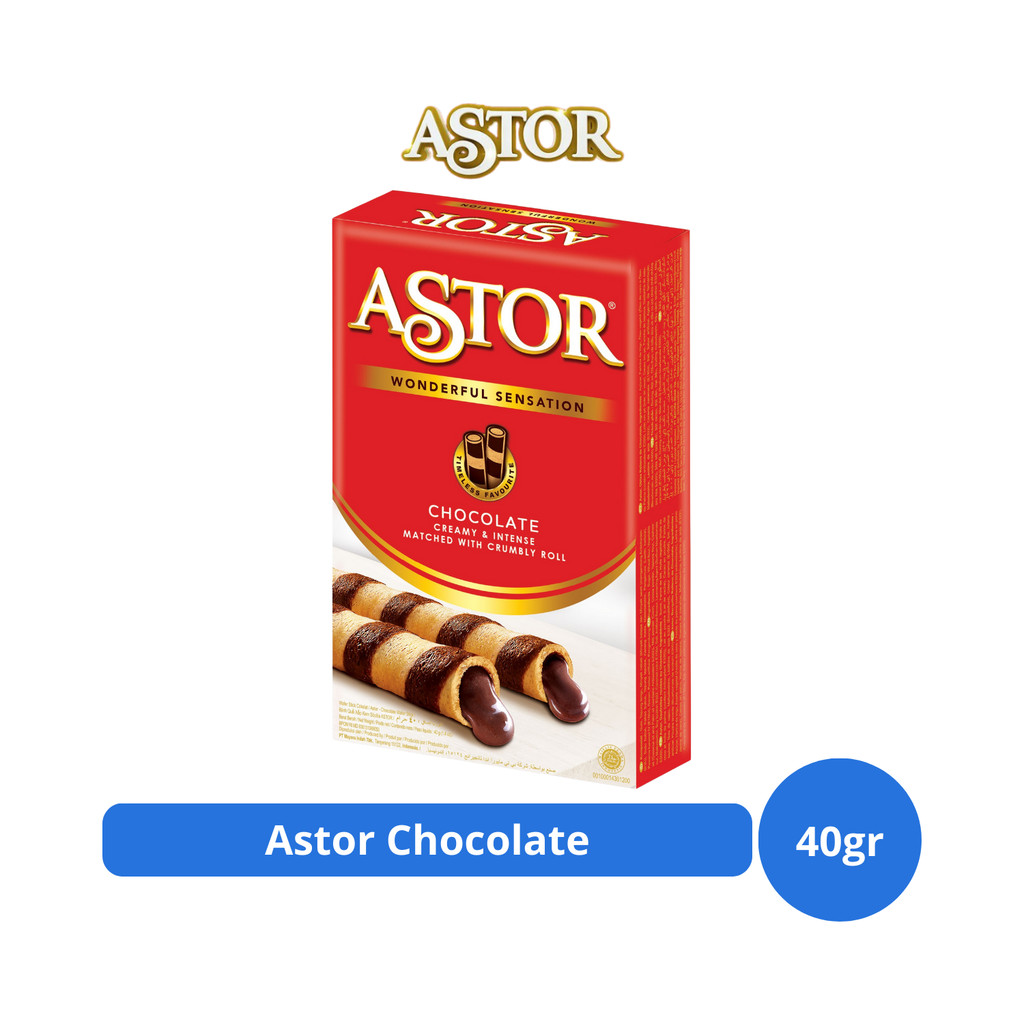 Astor Wafer Stick Cokelat 40gr merupakan salah satu varian wafer stick dari Mayora yang dibuat dengan memadukan resep rahasia original dari ahli pembuat cokelat dan bahan-bahan pilihan berkualitas untuk menghasilkan wafer stick renyah yang memiliki kemurniaan, kelembutan, dan kesempurnaan rasa. Wafer stick ini terdiri dari kombinasi wafer krispi, krim cokelat premium yang nikmat, dan susu lezat di setiap gigitannya, memberikan sensasi menikmati coklat premium yang tak terlupakan. Diproduksi dengan teknologi modern dengan bahan-bahan berkualitas sehingga menghasilkan wafer stick sebagai camilan yang pas dan bermutu baik. Nikmati kelezatan cokelat premium Astor Wafer Stick Cokelat 150gr dengan teman atau keluarga kesayangan Anda.