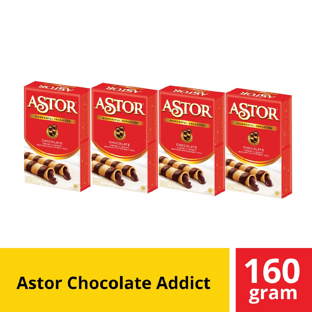 ASTOR Chocolate Addict Paket [4 pcs 40gr] merupakan varian baru dari Astor dengan kombinasi sensational antara wafer renyah dengan Cokelat yang banyak. Wafer ini memiliki rasa yang sangat lezat sehingga ideal untuk dinikmati pada saat santai bersama keluarga.