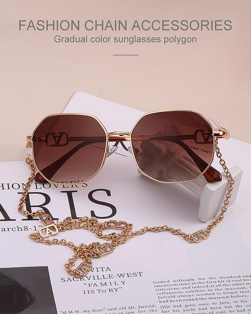 Asymmetrical Frame Sunglasses With Eyeglasses Chain Holder, Brown