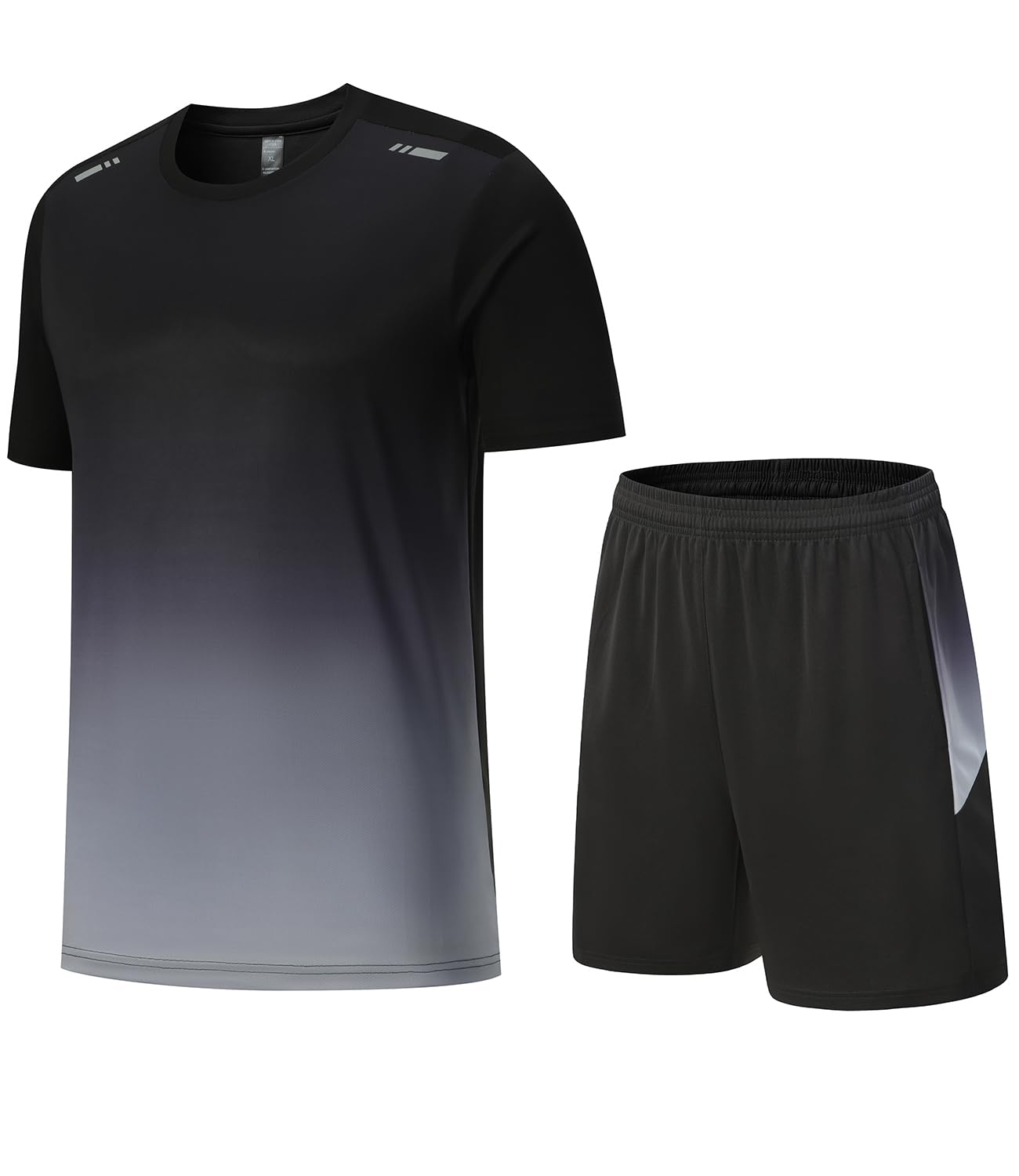 Atkata Мужской компрессионный комплект с коротким рукавом, 2 предмета, Спортивная одежда с коротким рукавом и шорты, Домашняя одежда, Стильный серый, Размер M