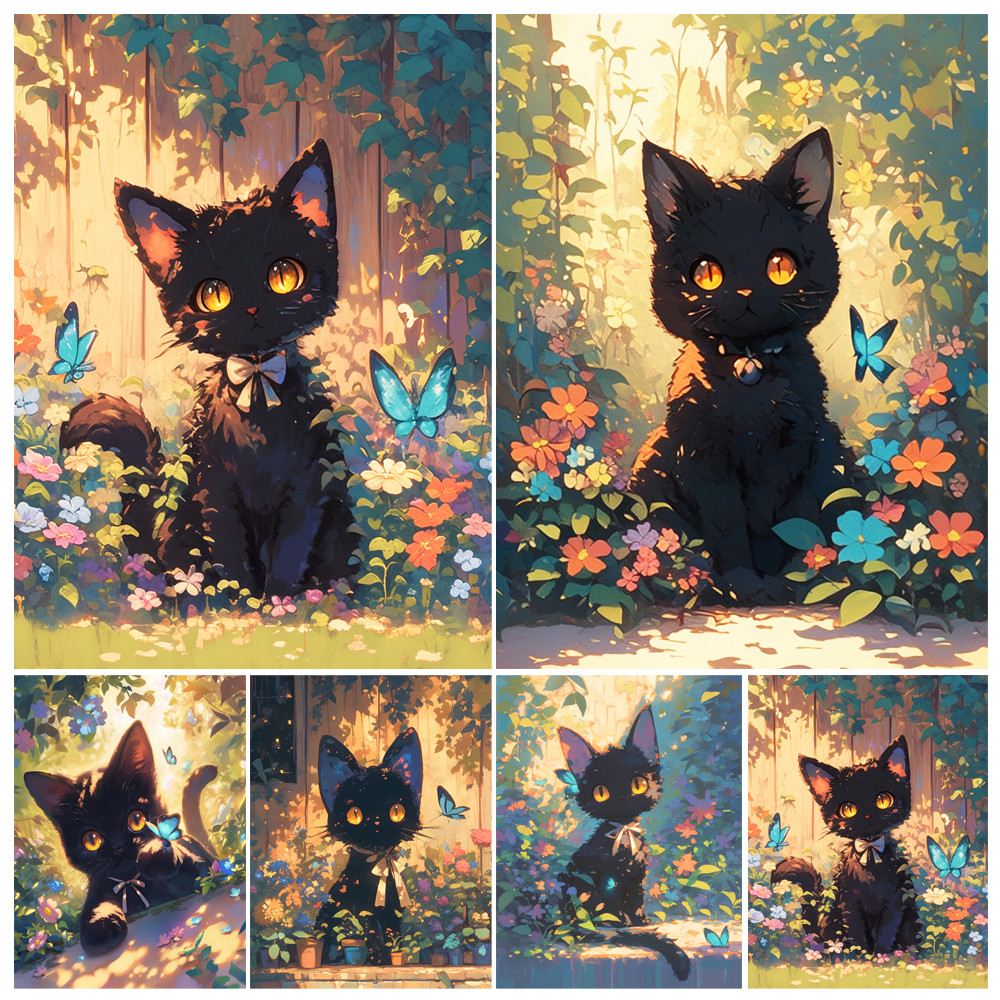 Painting by Numbers Kit Hand Paint The Black Cat In The Flowers DIY Acrylic Painting Acrylic Artwork Art Gift Home Decoration