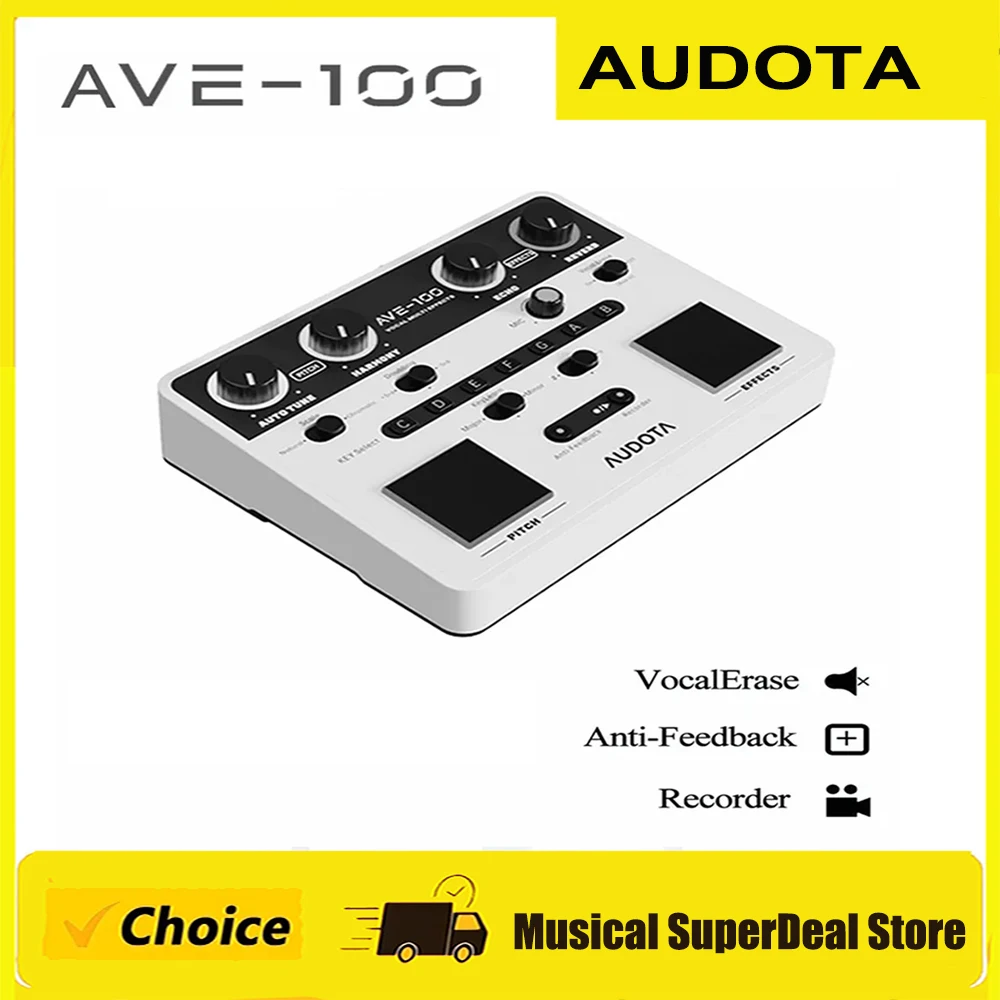 Audota Ave-100 Vocal Processor with Reverb, Delay, Pitch Correction & Harmony Modes - Auto Key Detection & Vocal Cancellation