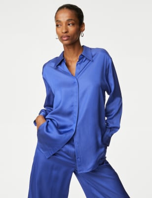 Exude opulence in this silky satin blouse from our Autograph collection. It's designed in a roomy oversized fit and framed by a smart collared neckline. The concealed button fastening along the front offers a neat finishing touch.n Autograph: premium investment pieces featuring contemporary cuts and refined finishing touches.