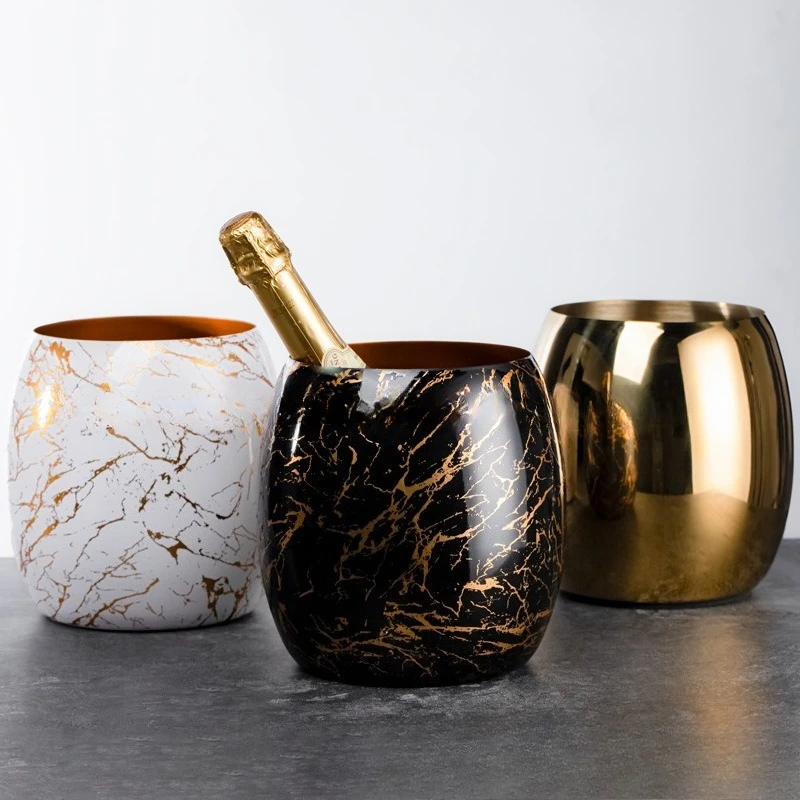 Round ice bucket 201 thick gold dry ice bucket bar KTV dedicated drinking utensils stainless steel ice bucket