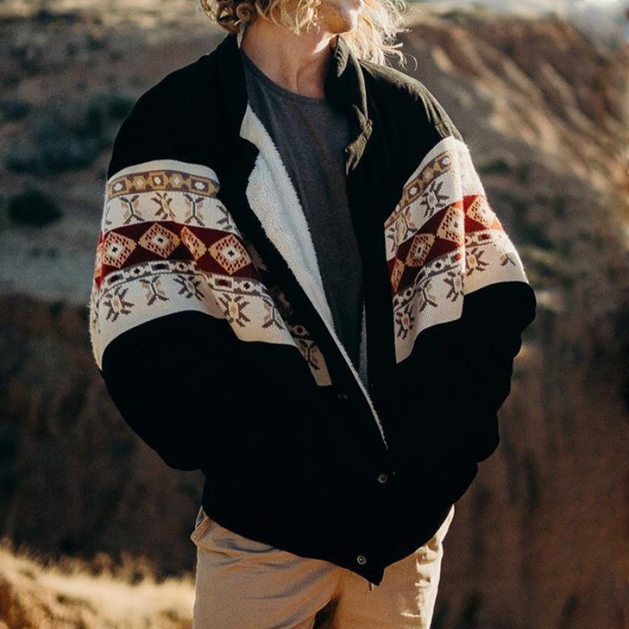 Autumn/Winter Fleece Geometric Print Unisex Jacket