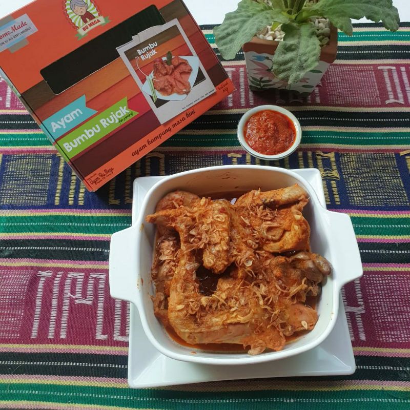 3. Ayam bumbu rujak Bu Mega siap dihidangkan. Sajikan dengan sambal terasi khas Bu Mega.
