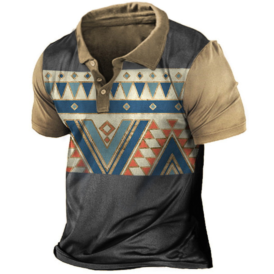 Aztec Ethnic Pattern Men Polo T-Shirt