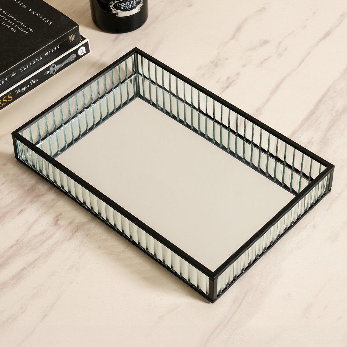 Aztec glass tray black 35x25x4. 5 cm