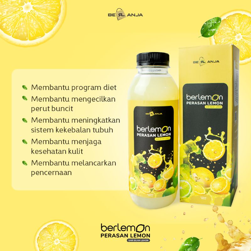 BERLEMON ini juga diproduksi dengan hanya memilih buah Lemon yang segar dan berkualitas, sehingga khasiat dan manfaat sari Lemon Murni yang dihasilkan pun Fresh. Tak lupa juga, proses pengemasan dari BERLEMON sendiri pun menggunakan tekhnologi yang menjaga kualitas kesegaran dan higienitas produk hingga ke tangan konsumen.