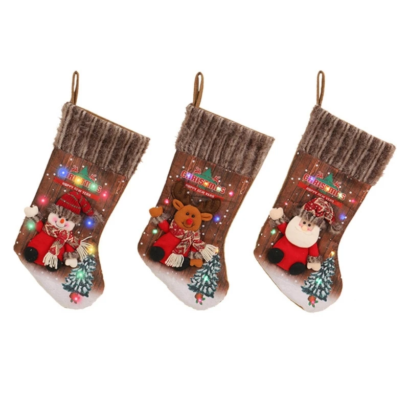 B0KB Светодиодные подвесные рождественские чулки Весёлые рождественские носки Конфеты Сумка для чулок