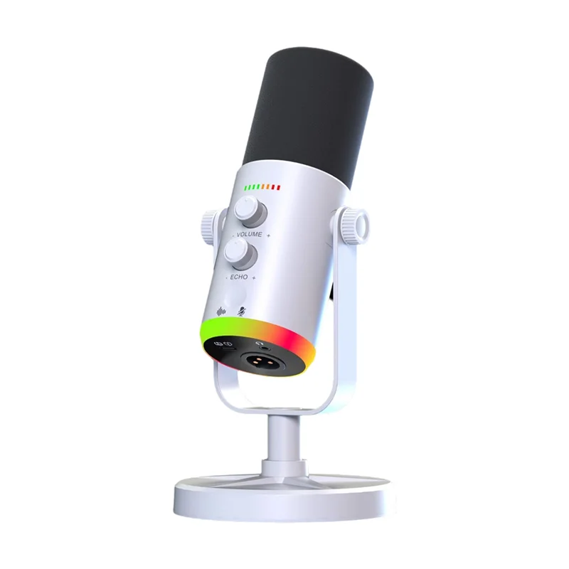B29C-Condenser MIC USB Dynamic RGB Gaming Microphone For Computer For Podcast Live Streaming Gaming White