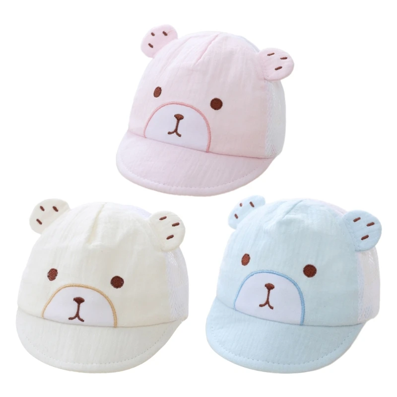 B2EB Детская летняя шляпа от солнца, сетчатые бейсбольные кепки с милым медведем, шапочки для плода, дышащий капот