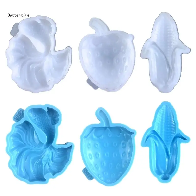 B36D силиконовая форма для брелока в виде клубники, кукурузы, золотой рыбки, с отверстием для брелока