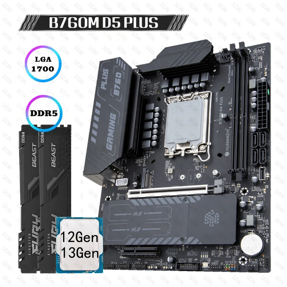 B760M Motherboard Set ARGB with12/13 Gen Core CPU DDR4 3200MHz Dual Channel 3*M2 PCIE4.0 2.5G Network Optional CPU RAM Kit
