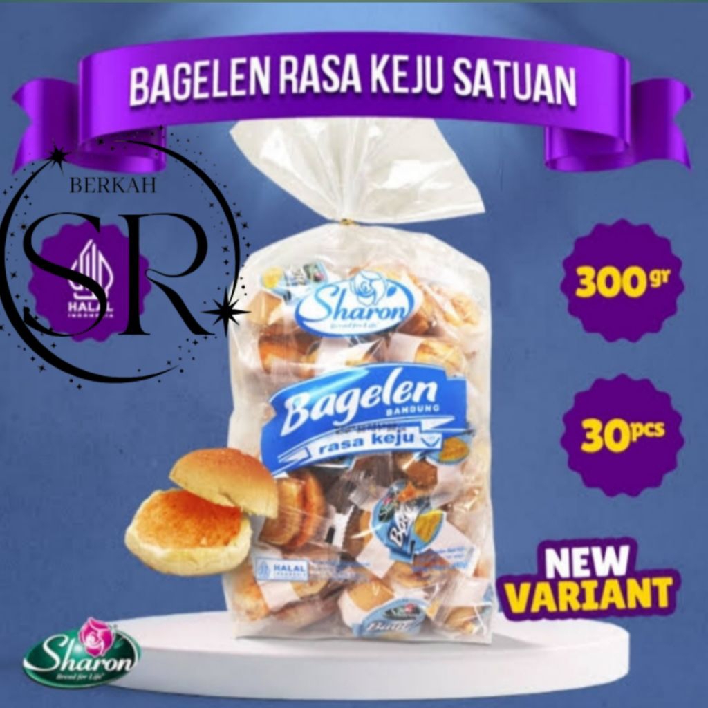 Bagelen Sharon rasa keju adalah roti kering khas Bandung yang diolesi mentega (roomboter) dan diberi taburan keju, menghasilkan rasa gurih dan manis yang khas. Bagelen ini menjadi camilan populer karena teksturnya yang renyah dan cita rasanya yang menggugah selera.