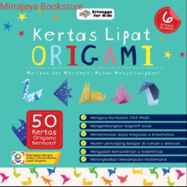 Bahan Habis Pakai: Kertas Lipat Origami merupakan media yang tepat untuk anak dalam melatih kreativitas dan kemampuan motoriknya. Berisikan 50 lembar kertas lipat origami serta 6 kreasi mudah yang dapat dilakukan oleh anak sekaligus dilengkapi video tutorial kertas lipat origami yang menyenangkan serta memudahkan anak dalam proses melipat.