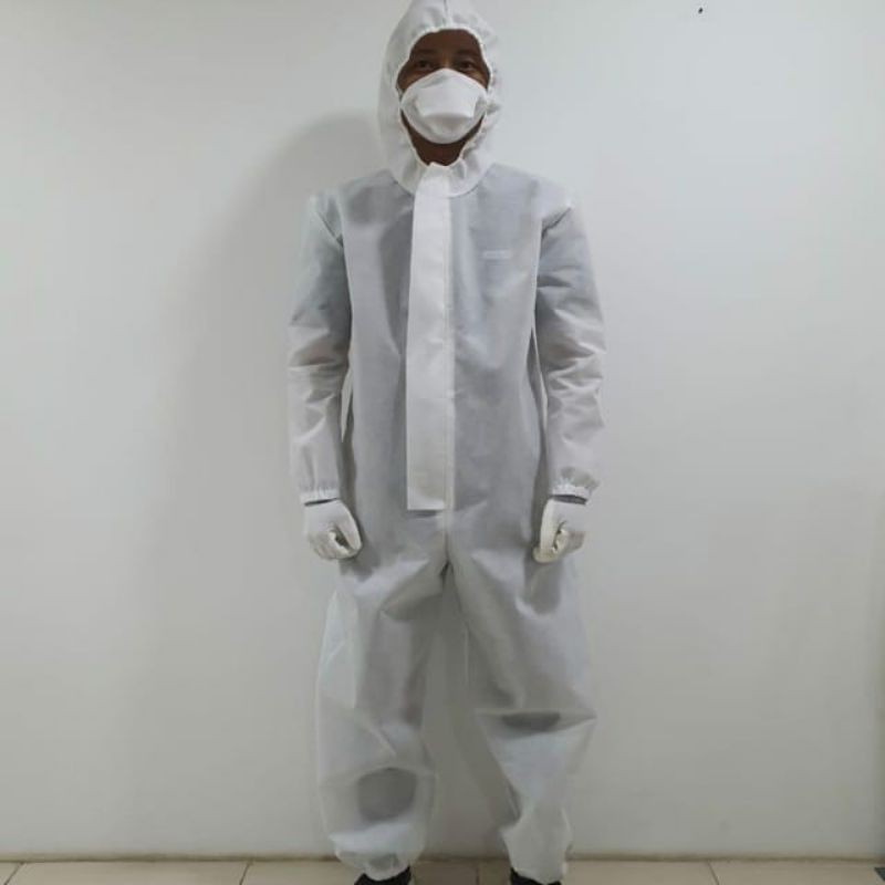 Baju Hazmat bahan Polypropylene Spunbond 75 gms, Penutup Sleting, model coverall hodie sambung