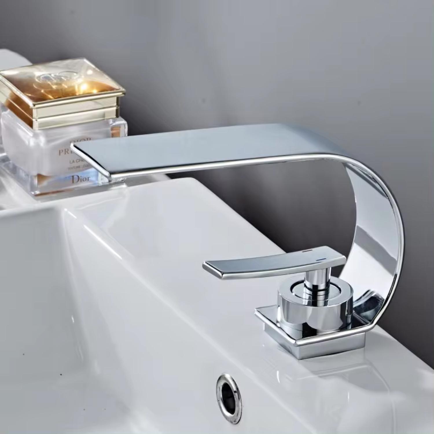 BAKALA Curve Single Handle Hot and Cold Water Tap Waterfall Water Sink Tap для ванной комнаты Смеситель из нержавеющей стали 304