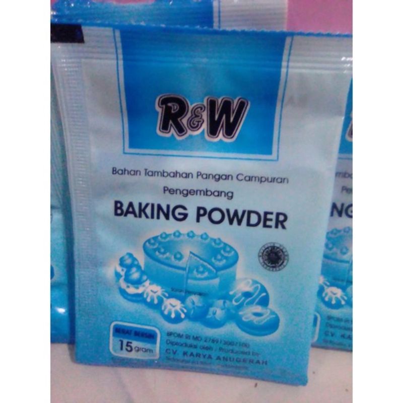 Baking Powder Rajawali R&W Double Acting 15 gram. Cocok untuk digunakan sebagai bahan tambahan dalam adonan. Expired masih lama. Foto diambil langsung dari produk yang dijual. Jadi barang 100% ori.