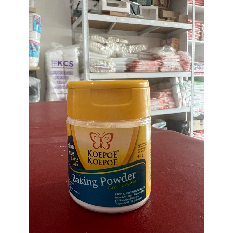 Baking powder Koepoe Koepoe digunakan untuk mengembangkan berbagai macam adonan kue, bolu, roti, dan biskuit.Dibuat dari bahan pilihan yang bermutu tinggi untuk kesempurnaan kue anda.