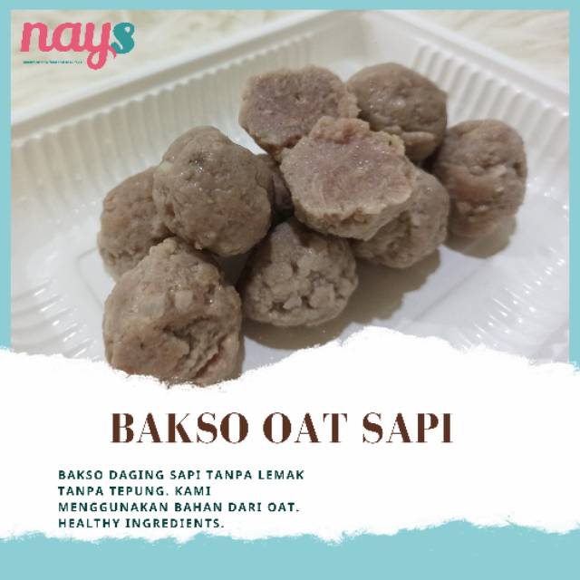 Kini kami hadir memberikan varian baru bakso oat sapi. Tanpa tepung ya, kami menggunakan oat. Perbandingan daging sapi : bahan lainnya yaitu 9:1 artinya 90℅ daging sapi dan 10% nya bahan lain seperti oat dan rempah. Wow?? Garam yang kami gunakan juga himalayan salt. Sehat bukan?