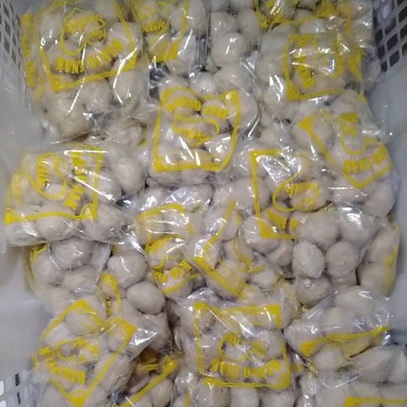 di kelolah dari bahan daging sapi tanpa Bahan pengawet ( 1 set/bungkus isi 10 Biji Bakso )