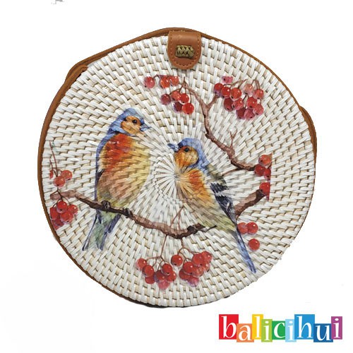 BALICIHUI TAS ROTAN BALI LUKIS BURUNG