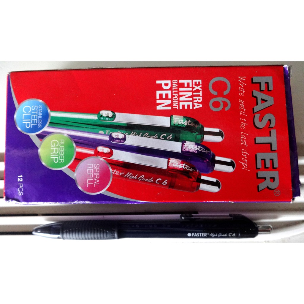 BALLPOINT FASTER C6 WARNA TINTANYA LEBIH PEKAT DAN LANCAR DITULISNYA. TERSEDIA DUA WARNA BIRU DAN HITAM