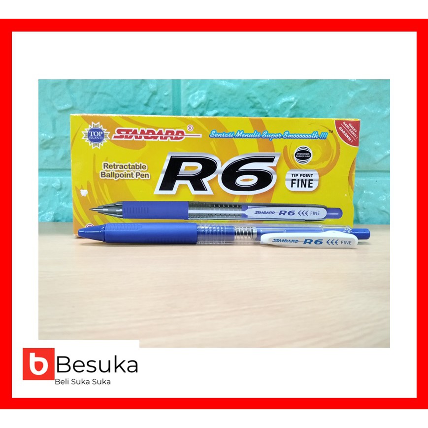 1.Pulpen Standard R6 yang berbentuk Retractable Ballpoint Pen dengan Fitur Auto Retract membuat konsumen merasa lebih aman tidak perlu khawatir noda tinta akan terkena kantong kemeja