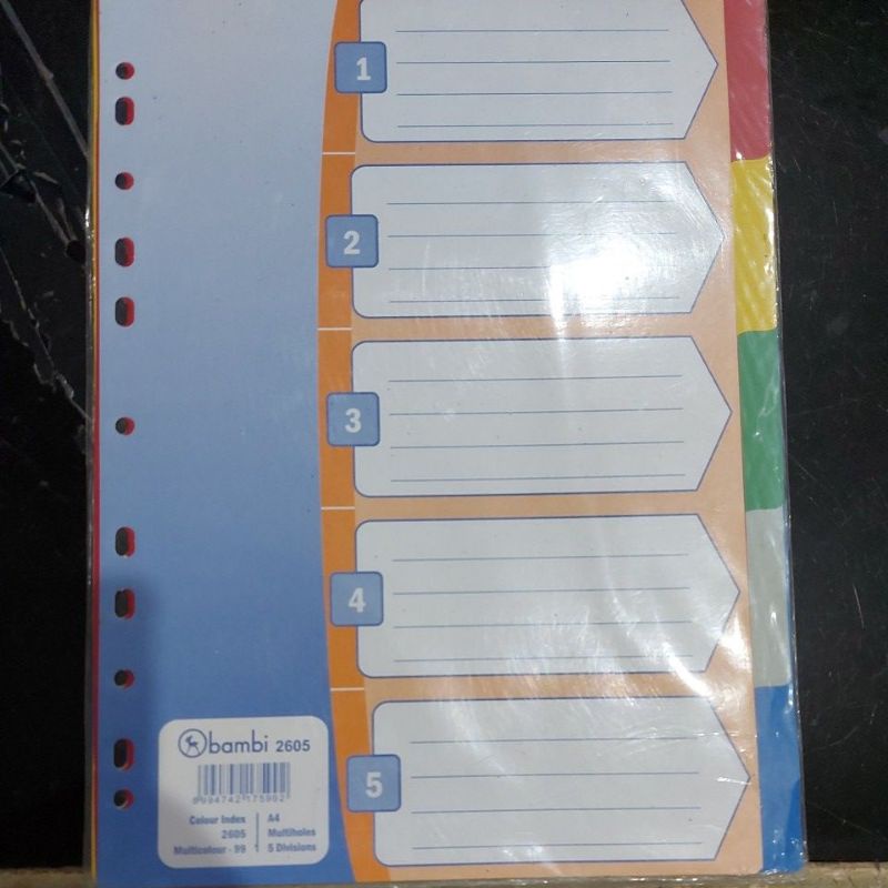BAMBI 2605 Divider ( A4 / 5 Colour Rigid PVC) - Harga yg tercantum per set