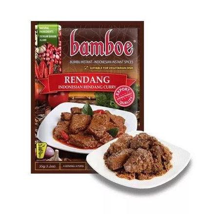 Bamboe Rendang adalah bumbu instan yang praktis untuk membantu memasak rendang. Bumbu ini diolah menggunakan bahan-bahan pilihan yang berkualitas untuk menghasilkan hidangan rendang yang lezat. Cocok untuk membuat rendang dari berbagai bahan daging, seperti sapi, kambing, bahkan ayam. 1 sachet bumbu instan ini memiliki berat 35 gram dan dapat digunakan untuk memasak 4 porsi makan.