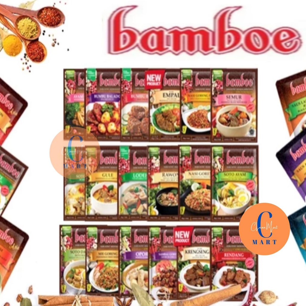 Bamboe Bumbu Instant merupakan bumbu instant yang praktis dan lezat untuk memudahkan Anda dalam memasak. Diproduksi menggunakan pilihan bahan-bahan natural yang fresh dan berkualitas, tanpa tambahan extract, essence, maupun pewarna buatan. Dengan memasak menggunakan bumbu racikan dari Bamboe maka dapat menyempurnakan hidangan Anda sehari-hari. Kini hadir dalam aneka citarasa khas Asia ke dapur Anda. Bumbu Instan ini tidak berbentuk bubuk, namun berbentuk tumis/ cair, sehingga cita rasa yang di hasilkan sangat enak di lidah. Nikmati masakan yang lezat di setiap asupan.