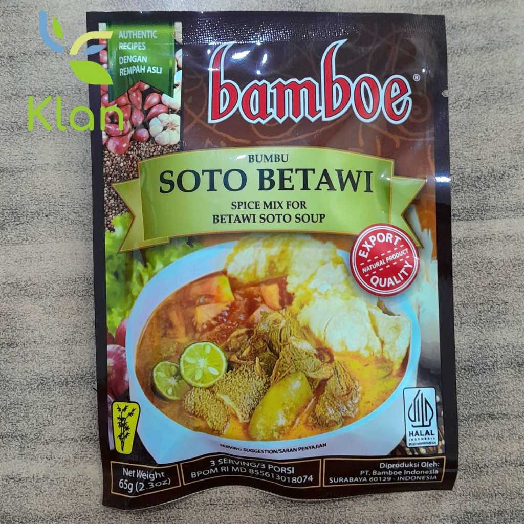Bamboe Soto Betawi adalah bumbu soto instan yang terbuat dari rempah-rempah alami pilihan, seperti bawang merah, bawang putih, kunir, jahe, garam, merica, sereh, dan minyak nabati. Sotonya menghasilkan kuah yang lezat, tidak kalah dengan bumbu soto racikan rumah.