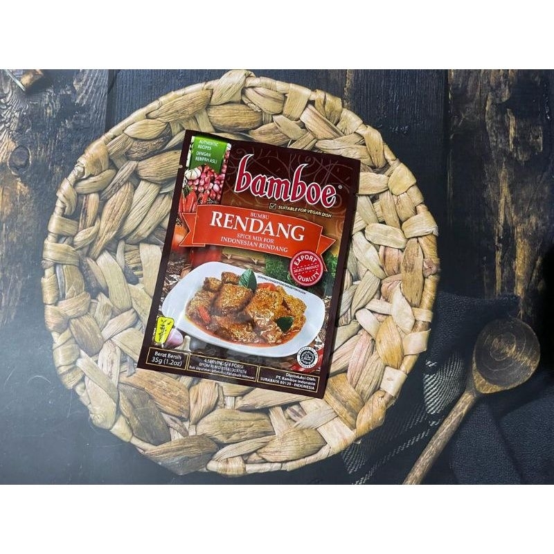 Bamboe Rendang adalah bumbu instan yang praktis untuk membantu memasak rendang. Bumbu ini diolah menggunakan bahan-bahan pilihan yang berkualitas untuk menghasilkan hidangan rendang yang lezat. Cocok untuk membuat rendang dari berbagai bahan daging, seperti sapi, kambing, bahkan ayam.