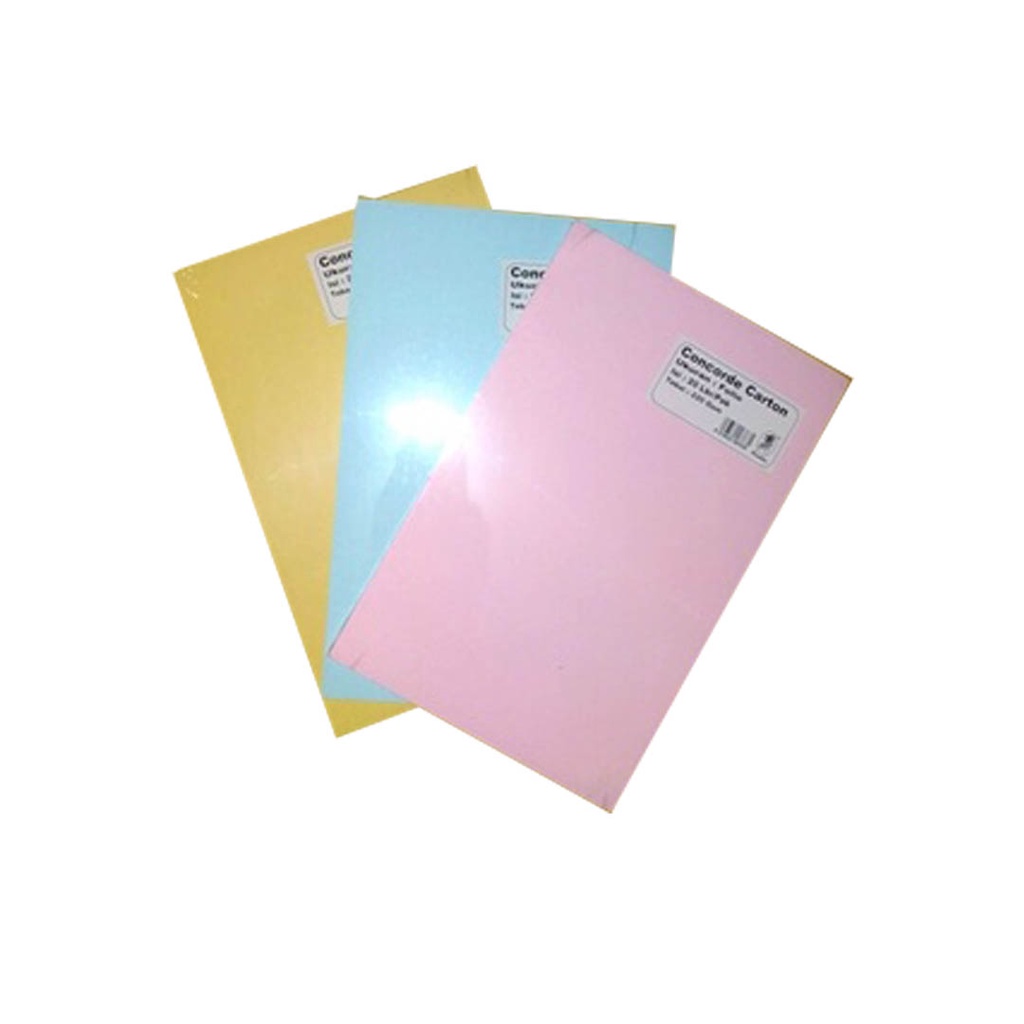 Kertas concorde/kertas sertifikat merek bamboo bukuran Folio(F4) dengan isi 20 lembar merupakan kertas untuk keperluan cetak Sertifikat/Piagam yang tersedia dalam beberapa varian warna pink, biru, kuning, dan putih.